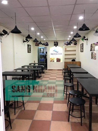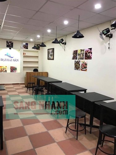 - Diện tích 5x17m, không gian rộng, thoáng mát, hệ thống bếp đầy đủ, có cả hệ thống hút khói; trang bị đầy đủ thiết bị, như: amera, đèn trang trí, máy tính tiền, tủ kính chứa hải sản, tủ, bàn ghế, máy lạnh.....