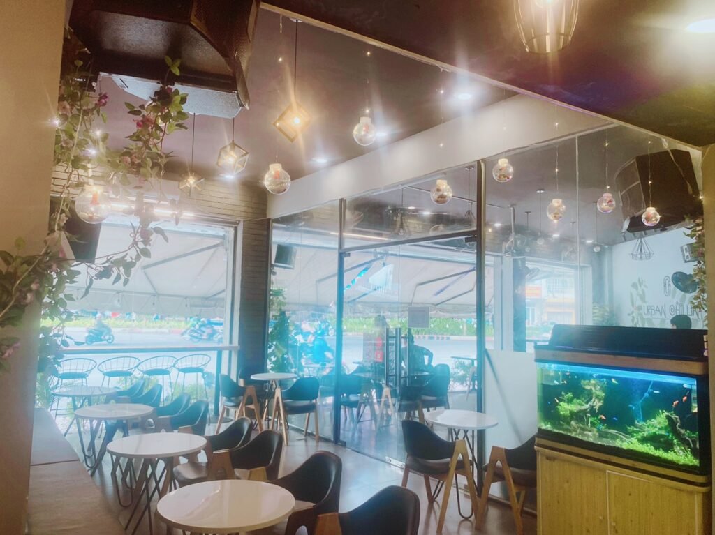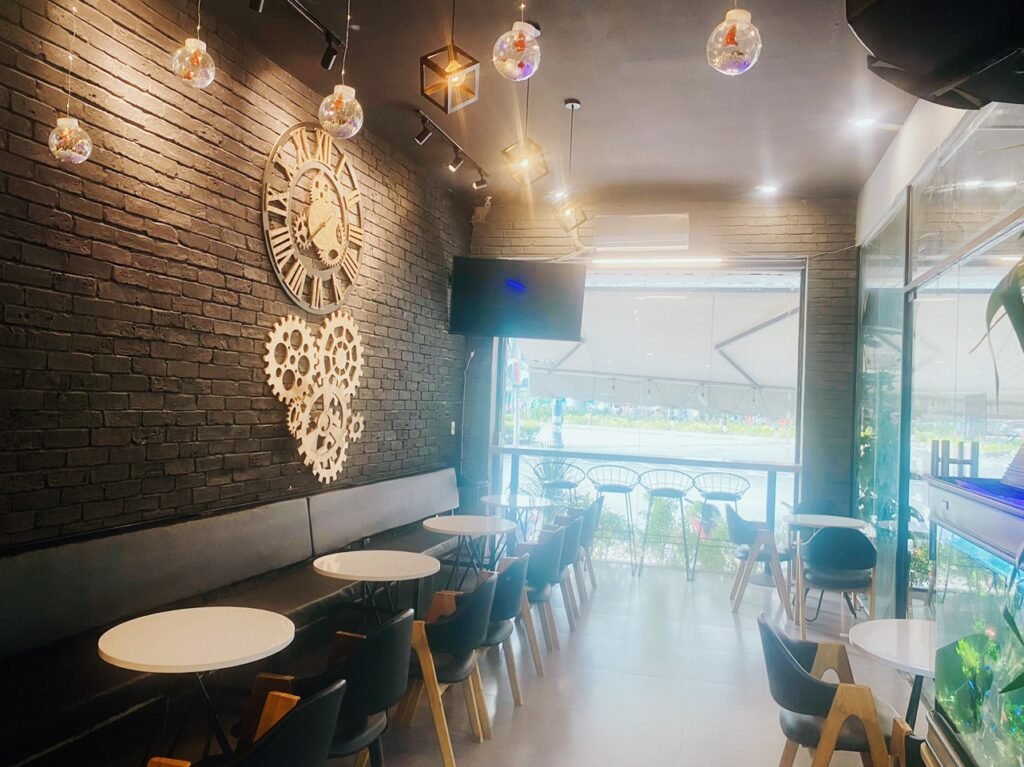 Mình sang lại tất cả trang thiết bị dụng cụ gồm 2máy lạnh, 4loa, 2amply, 1thùng maxsup nghe nhạc hay, máy pha cafe của Ý 85tr, màn hình chiếu, tivi lớn, quầy bar lớn chữ U, hồ cá thủy sinh, tất cả bàn ghế salon, toàn bộ kiếng cường lực, 10quạt, tủ mát, tủ bánh kem vv….. Quán tâm huyết đầu tư nhiều,kỹ lưỡng vì xảy ra biến cố nên đành ra đi. Hỗ trợ công thức nước cho và sẽ chỉ dẫn giới thiệu tận tình cách làm việc tại đây cho khách thiện chí