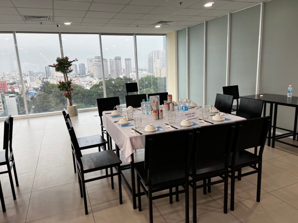Quán nằm trên tầng 15, toà nhà văn phòng VOV, với diện tích sử dụng 300m2, quán được thiết kế rộng rãi, thoáng mái. Hơn nữa, quán có vị trí thuận lợi, mật độ lưu thông đông đúc, gần các toà nhà văn phòng và đài truyền hình, đã có lượng khách quen, thu nhập khá cao, đảm bảo bạn nào thiện chí sang là lời liền. Ngoài ra, bếp và toilet riêng, đầy đủ.